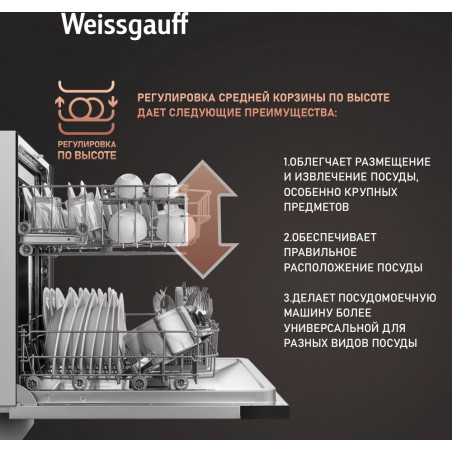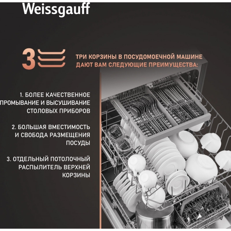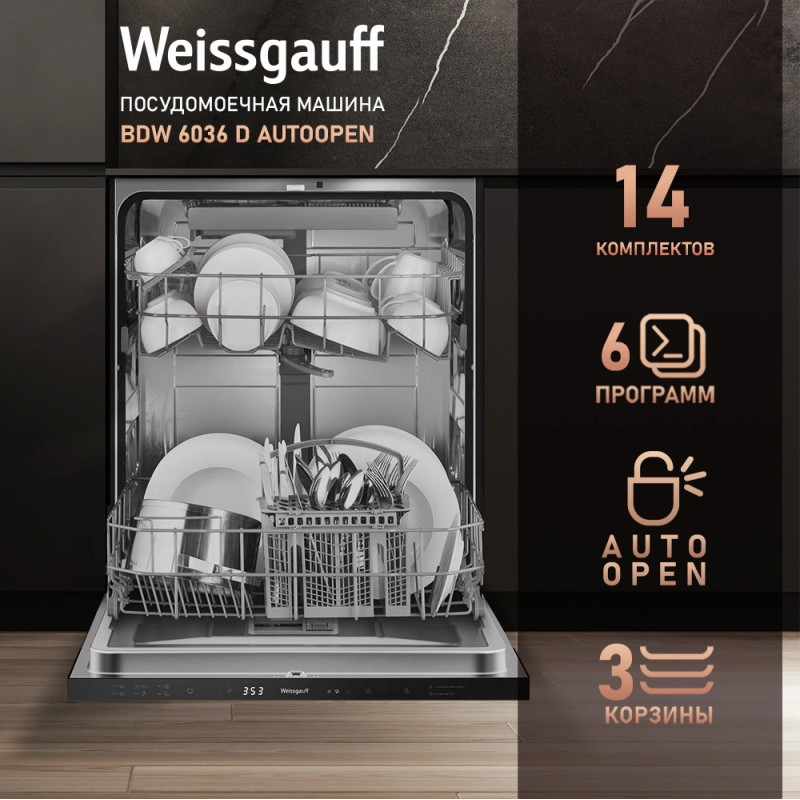 Посудомоечная машина встраив. Weissgauff BDW 6036 D полноразмерная