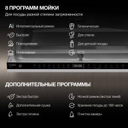 - Интеллектуальный режим, Быстрая, Повседневная, Интенсивная, Гигиеническая, Стекло, Детская посуда, ECO