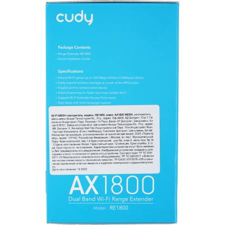Повторитель беспроводного сигнала Cudy RE1800 AX1800 10/100/1000BASE-TX/Wi-Fi белый