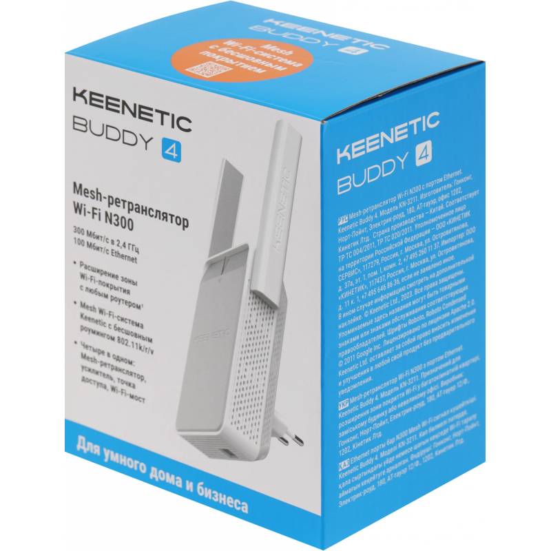Повторитель беспроводного сигнала Keenetic Buddy 4 (KN-3211) N300 10/100BASE-TX белый