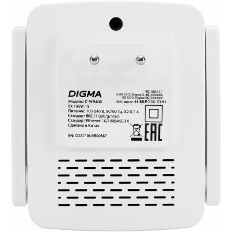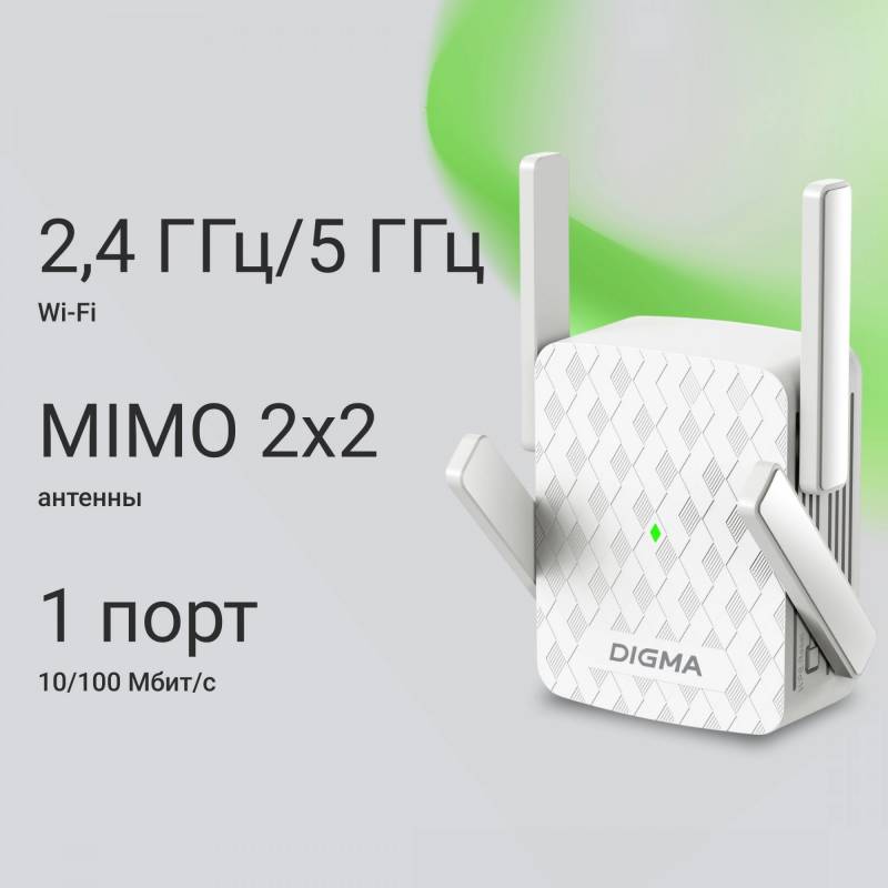 Повторитель беспроводного сигнала Digma D-WR400 AC1200 10/100BASE-TX/Wi-Fi белый