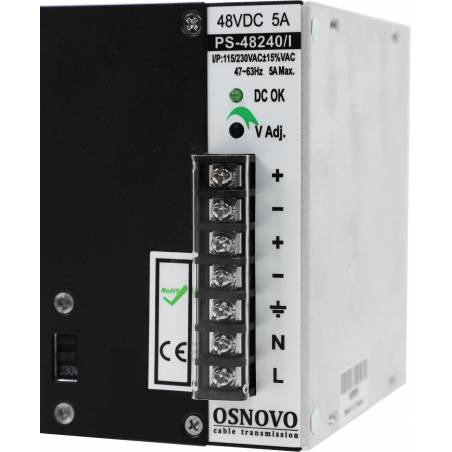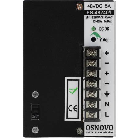 - Промышленный блок питания. DC48V, 5A (240W). Входное напряжение AC195-265V. КПД: 84%. Регулировка выходного напряжения в диапазоне 45-53V. Защита от короткого замыкания, перенапряжения и перегрузки. Принудительная система охлаждения (вентилятор). Монт