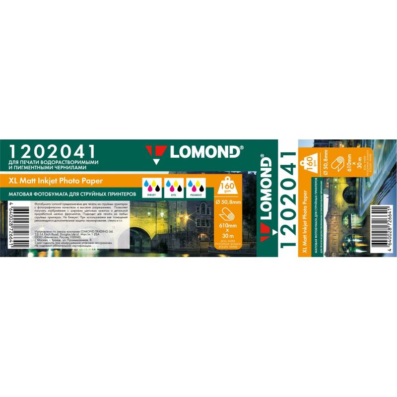 Бумага Lomond 1202041 24"(A1) 610мм-30м/160г/м2/белый матовое для струйной печати втулка:50.8мм (2")