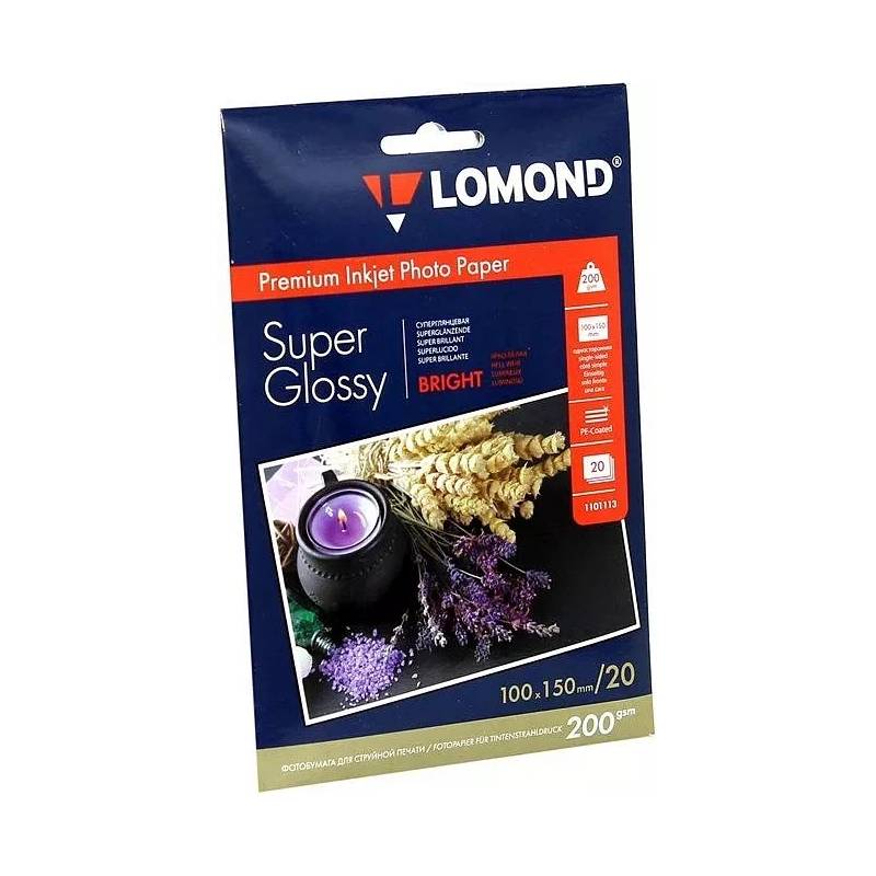 Фотобумага Lomond 1101113 10x15/200г/м2/ярко-белый/20л. супер глянец для струйной печати