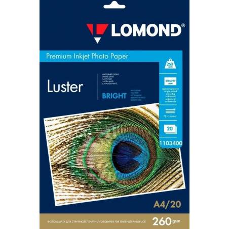 Фотобумага Lomond 1103400 A4/260г/м2/20л./ярко-белый CIE164% атласное для струйной печати