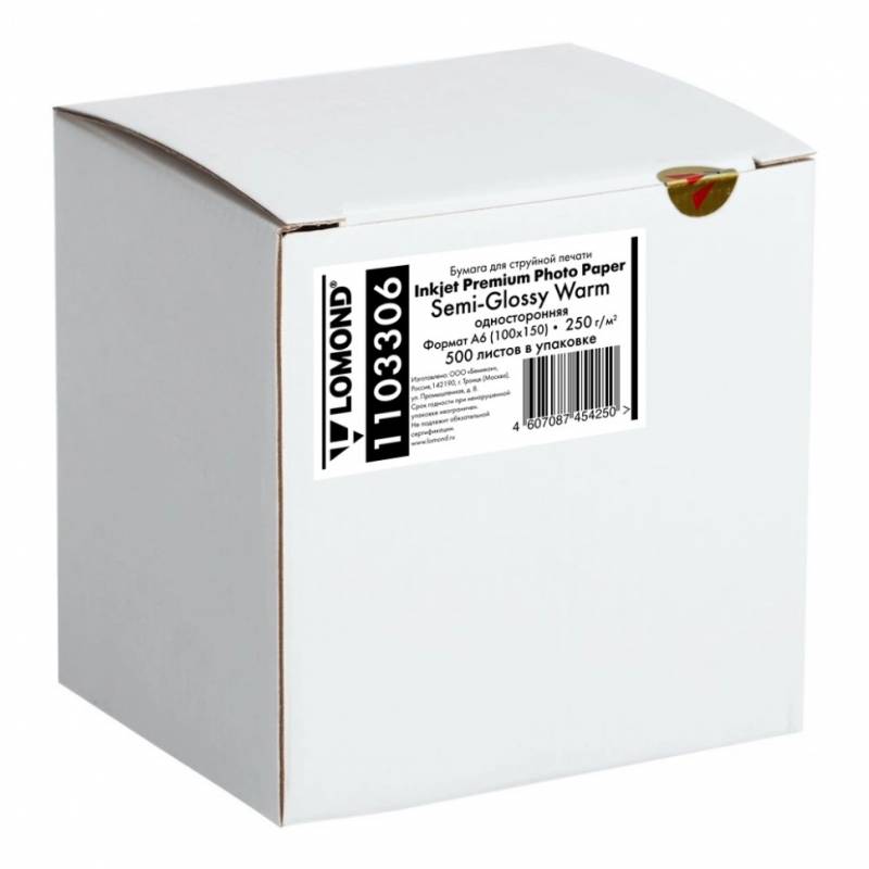 Фотобумага Lomond 1103306 10x15/260г/м2/500л./тепло-белый полуглянцевое для струйной печати