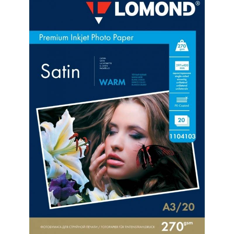 Фотобумага Lomond 1104103 A3/270г/м2/20л./тепло-белый сатин для струйной печати