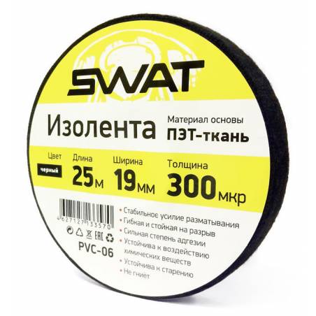 Изолента Swat PVC-06 25м 0.3x19мм ПЭТ-ткань (упак.:1шт)