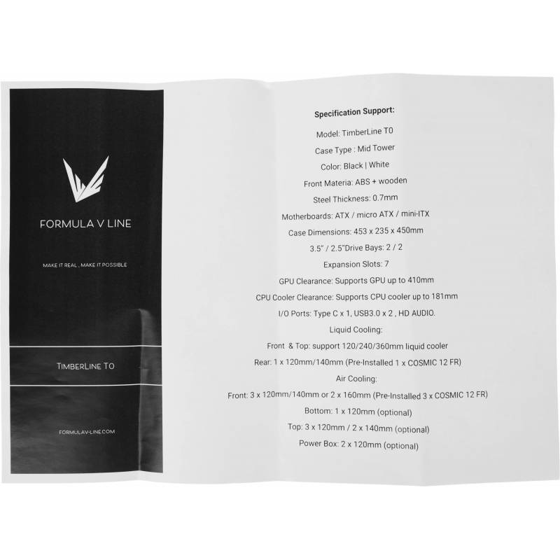 Корпус Formula TimberLine T0 белый без БП ATX 6x120mm 6x140mm 2xUSB3.0 audio