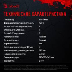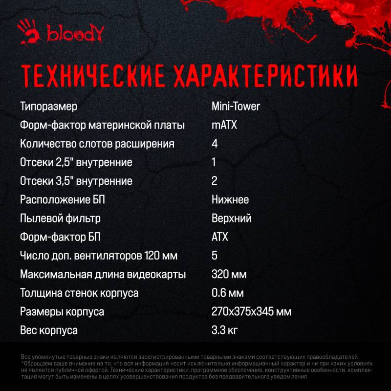 Корпус Bloody BD-CC105 черный без БП mATX 5x120mm 1xUSB2.0 1xUSB3.0 audio bott PSU