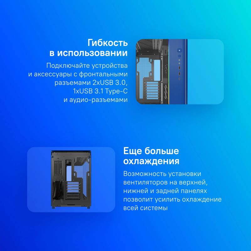 Корпус Montech King 95 голубой без БП ATX 9x120mm 6x140mm 2xUSB3.0 audio bott PSU