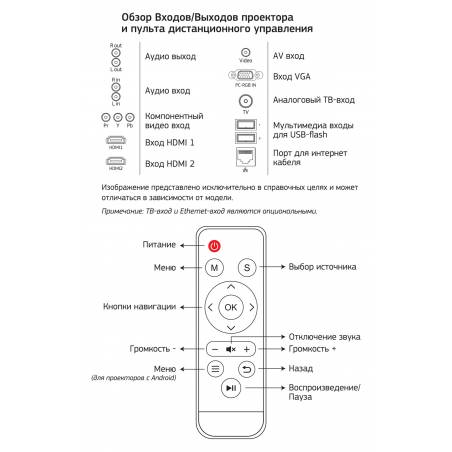 - Фронтальная проекция, Обратная проекция, Крепление к потолку
