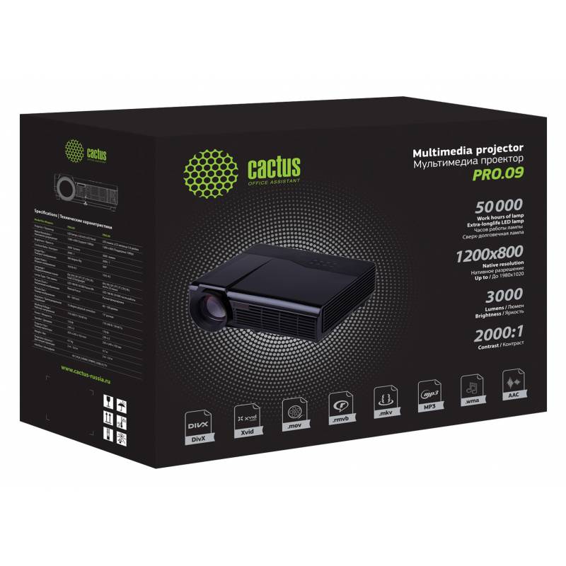 Проектор Cactus CS-PRO.09WT.WXGA-A LCD 300Lm ANSI (1280x720) 2000:1 ресурс лампы:50000часов 2xUSB typeA 2xHDMI 4.7кг
