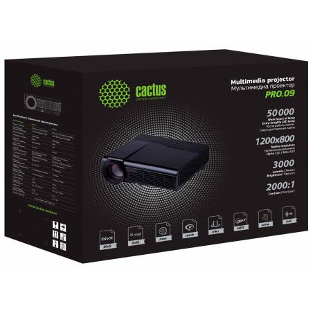 Проектор Cactus CS-PRO.09WT.WXGA-W LCD 300Lm ANSI (1280x720) 2000:1 ресурс лампы:50000часов 2xUSB typeA 2xHDMI 4.7кг