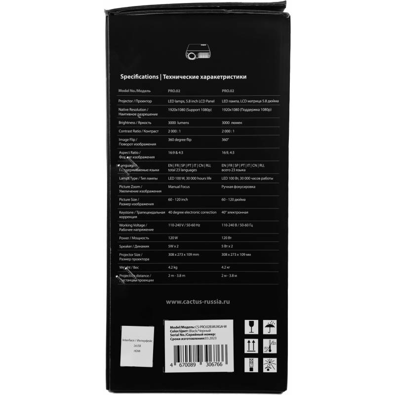 Проектор Cactus CS-PRO.02B.Full HD-W LCD 300Lm ANSI (1920x1080) 2000:1 ресурс лампы:30000часов 2xUSB typeA 1xHDMI 4.2кг