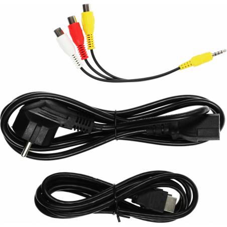 - кабель HDMI 1.5м, 3,5 мм кабель AV, кабель питания, пульт ДУ, салфетка из микрофибры, руководство пользователя