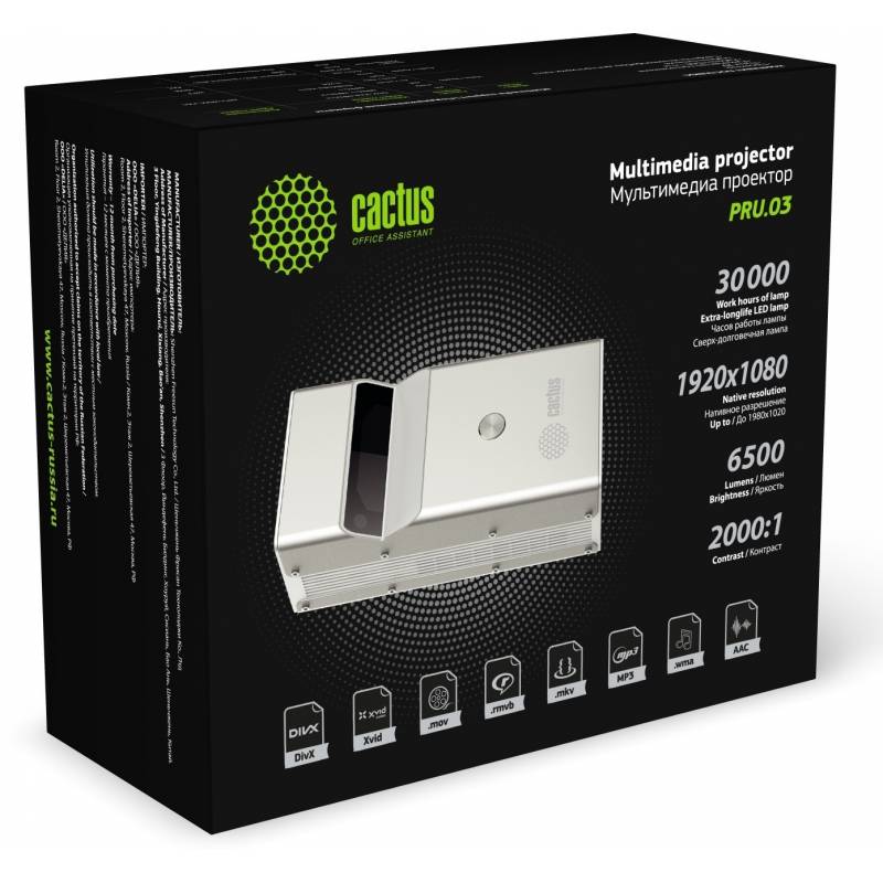 Проектор Cactus CS-PRU.03WT.Full HD-A DLP 650Lm ANSI (1920x1080) 2000:1 ресурс лампы:30000часов 2xUSB typeA 1xHDMI 1.5кг