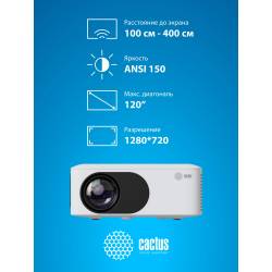 Проектор Cactus CS-PRE.08WT.WXGA LCD 150Lm ANSI (1280x720) 1000:1 ресурс лампы:30000часов 1xUSB typeA 1xHDMI 0.5кг