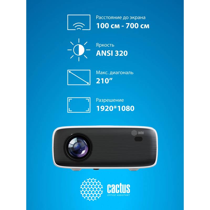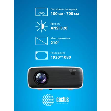 Проектор Cactus CS-PRM.07WT.Full HD LCD 320Lm ANSI (1920x1080) 1500:1 ресурс лампы:50000часов 1xUSB typeA 3xHDMI 1.16кг
