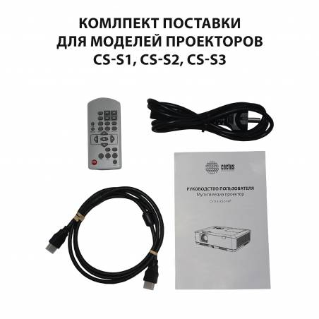 - Проектор, руководство пользователя, VGA-кабель, ПДУ
