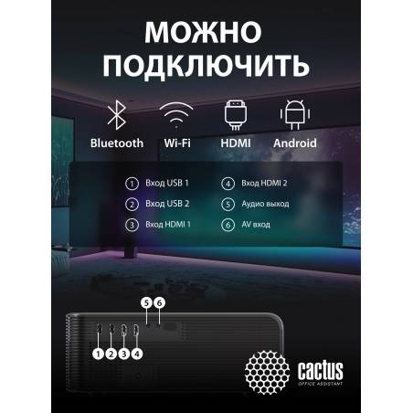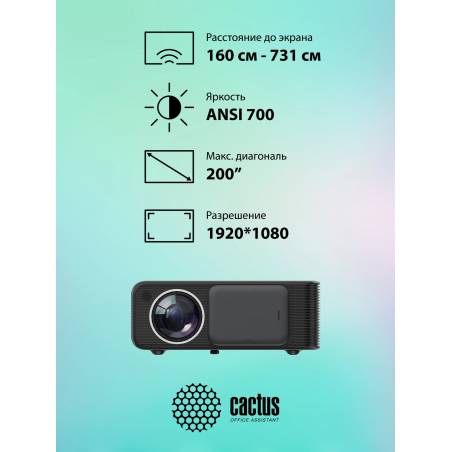 Проектор Cactus CS-PRM.01B.Full HD-A LCD 700Lm ANSI (1920x1080) 2500:1 ресурс лампы:50000часов 2xUSB typeA 2xHDMI 1.8кг