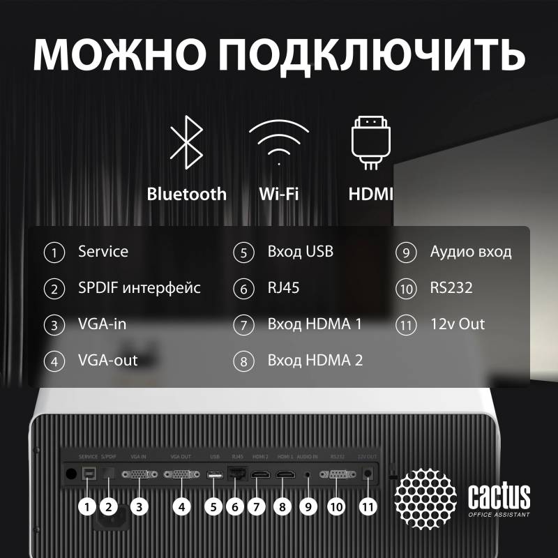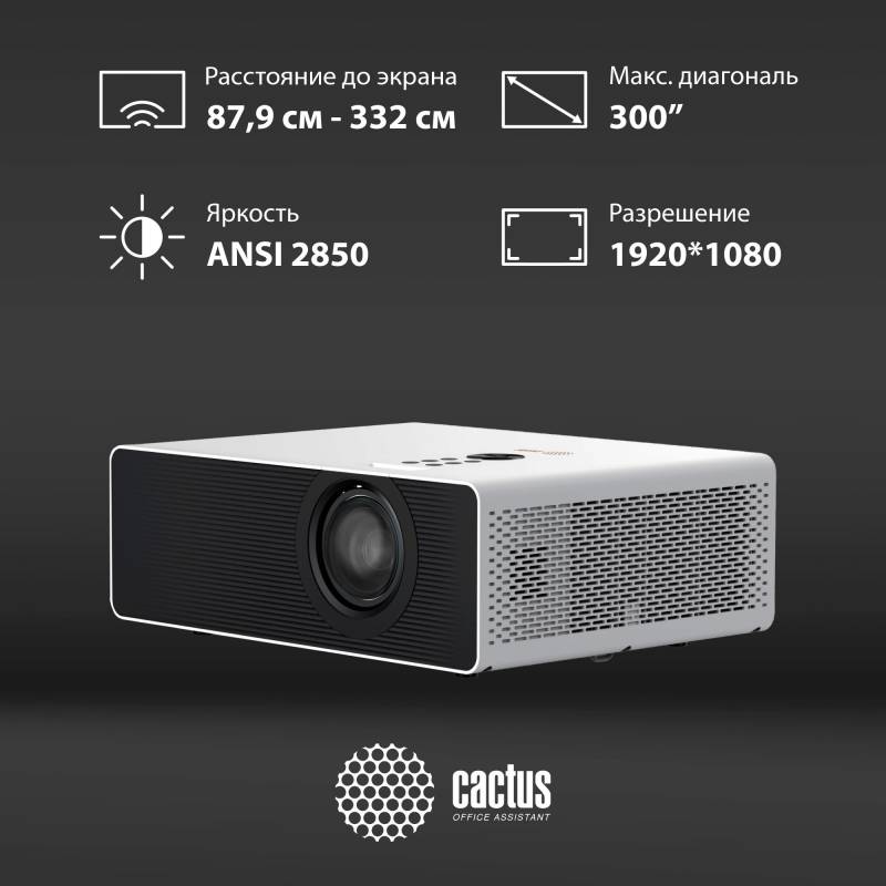 Проектор Cactus CS-C4.SG DLP 2850Lm ANSI (1920x1080) 800000:1 ресурс лампы:25000часов 1xUSB typeA 2xHDMI 6.8кг