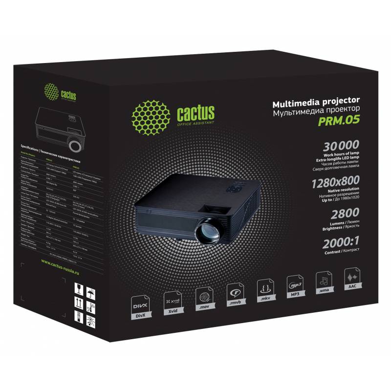 Проектор Cactus CS-PRM.05WT.WXGA-A LCD 2800Lm (1280x800) 2000:1 ресурс лампы:30000часов 2xUSB typeA 2xHDMI 4.2кг