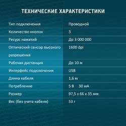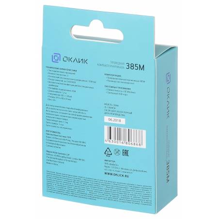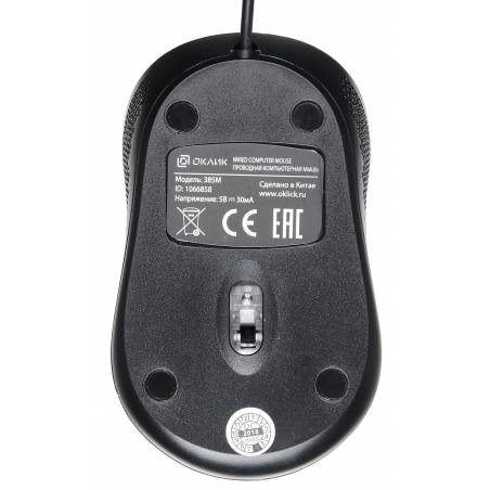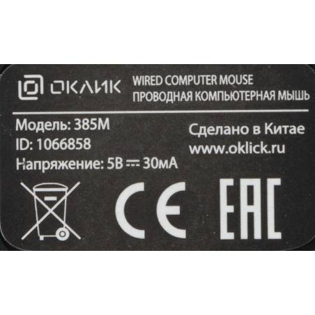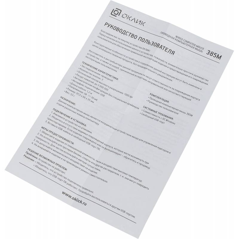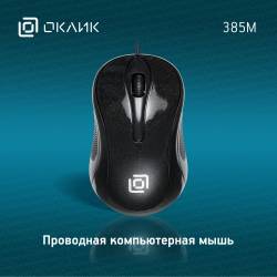 Мышь Оклик 385M черный оптическая 1600dpi USB для ноутбука 3but (1066858)