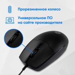 - Симметричная универсальная компьютерная мышь с возможностью выбора оптимального режима чувствительности сенсора, прорезиненное колесо прокрутки. Матовая нескользящая поверхность. Специальное ПО расширяющее функциональные возможности мышки.