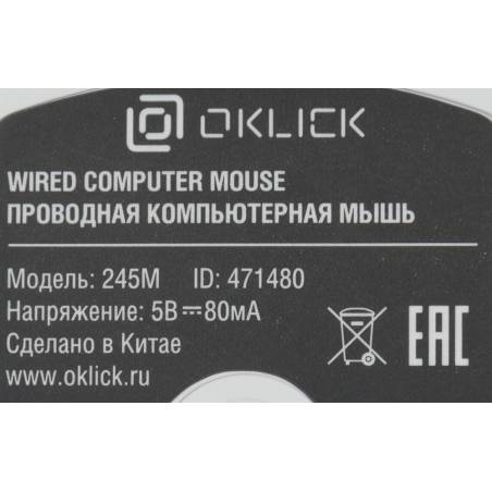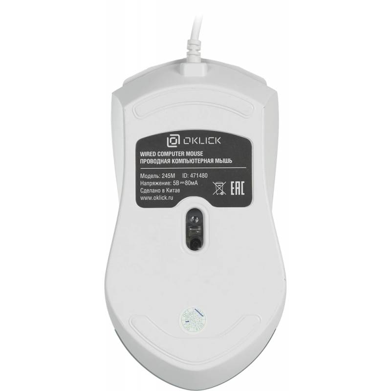 Мышь Оклик 245M белый оптическая 1000dpi USB 3but (471480)