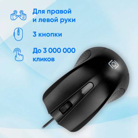 Мышь Оклик 225M черный оптическая 1200dpi USB для ноутбука 3but (997791)