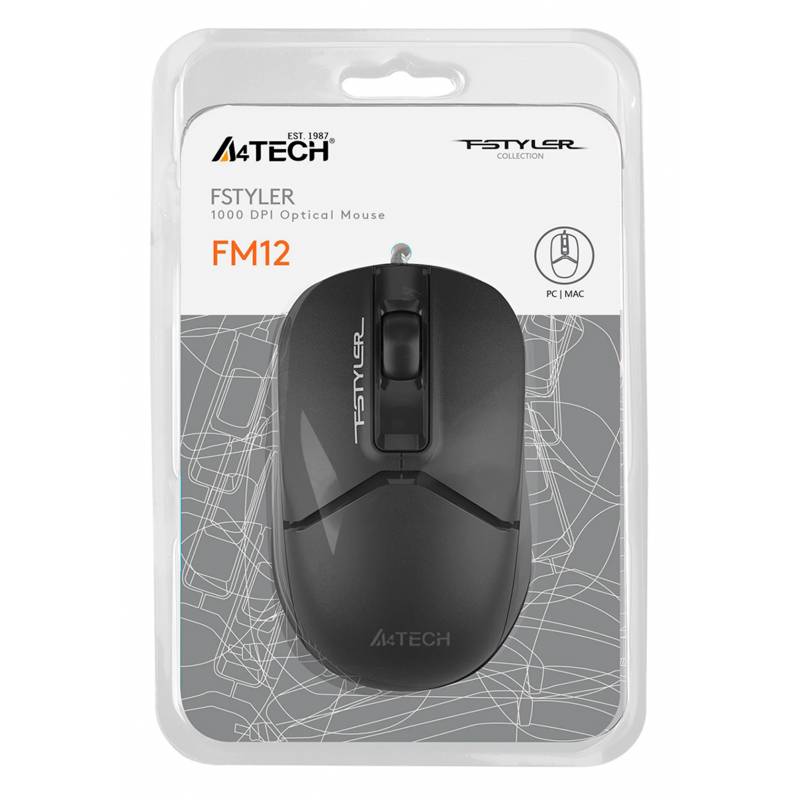 Мышь A4Tech Fstyler FM12 черный оптическая 1200dpi USB 3but (FM12 BLACK)