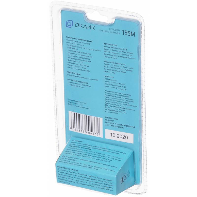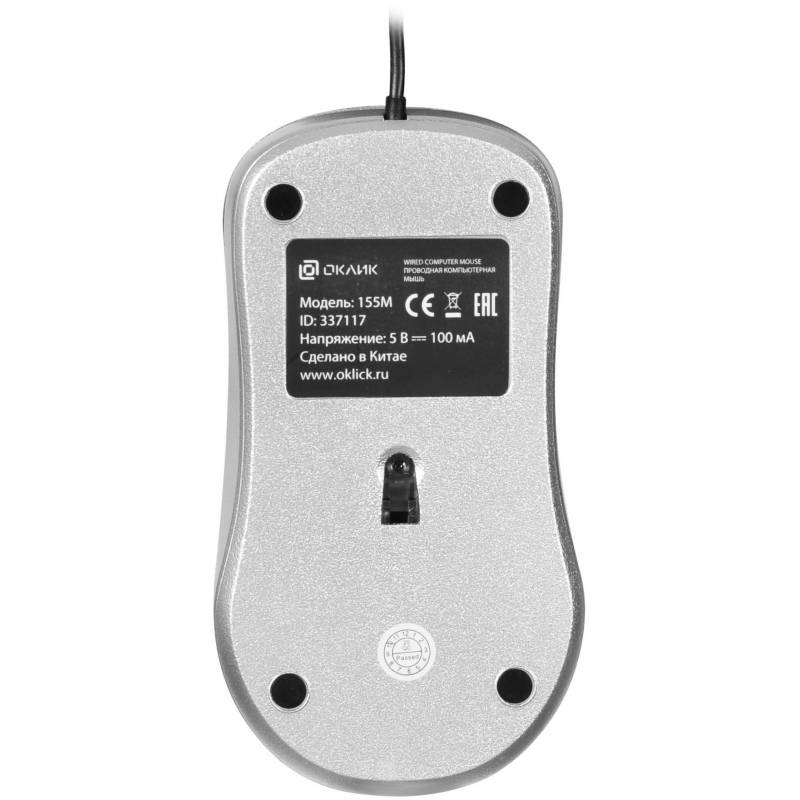 Мышь Оклик 155M серебристый оптическая 1600dpi USB 4but (337117)