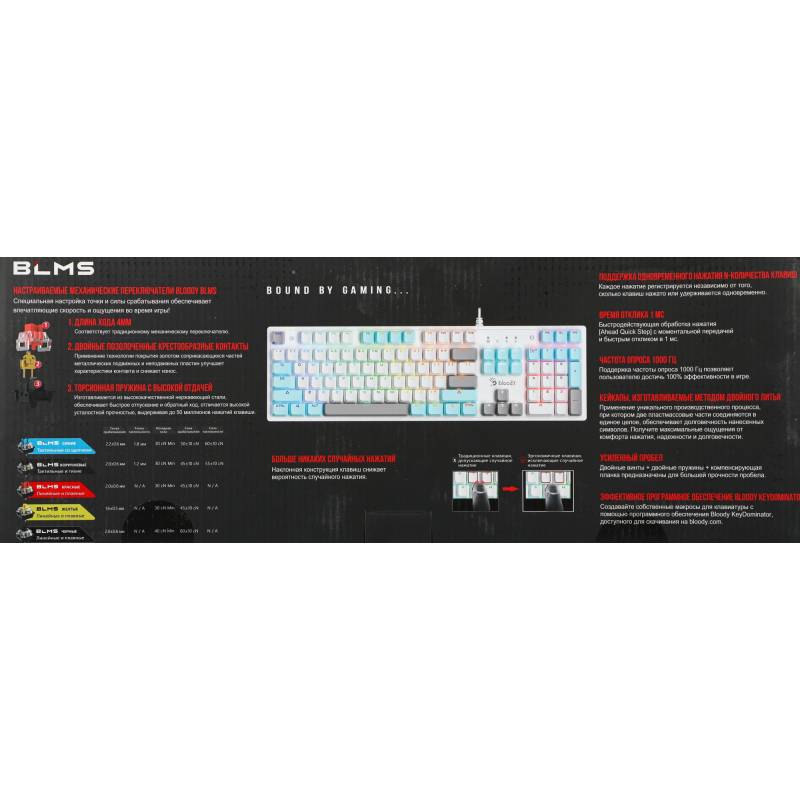 Клавиатура A4Tech Bloody S510N механическая белый USB for gamer LED (S510N (ICY WHITE ))