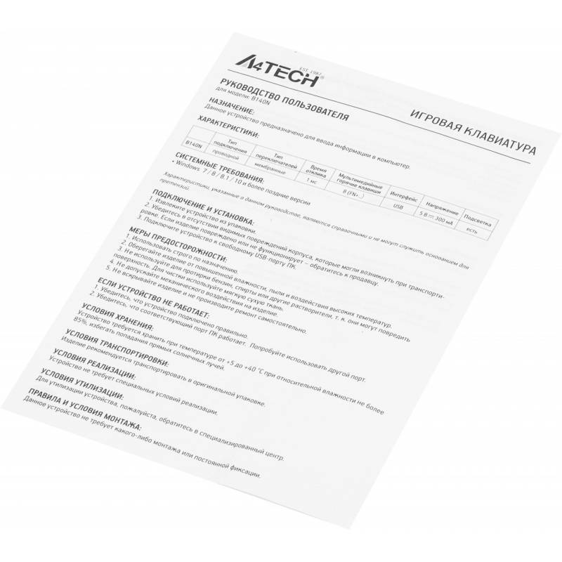 Клавиатура A4Tech Bloody B140N черный USB Multimedia for gamer LED (подставка для запястий) (B140N)
