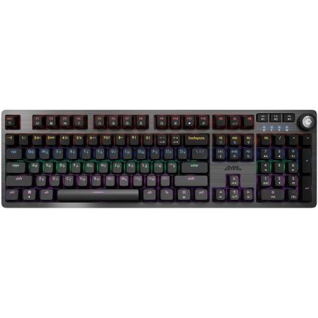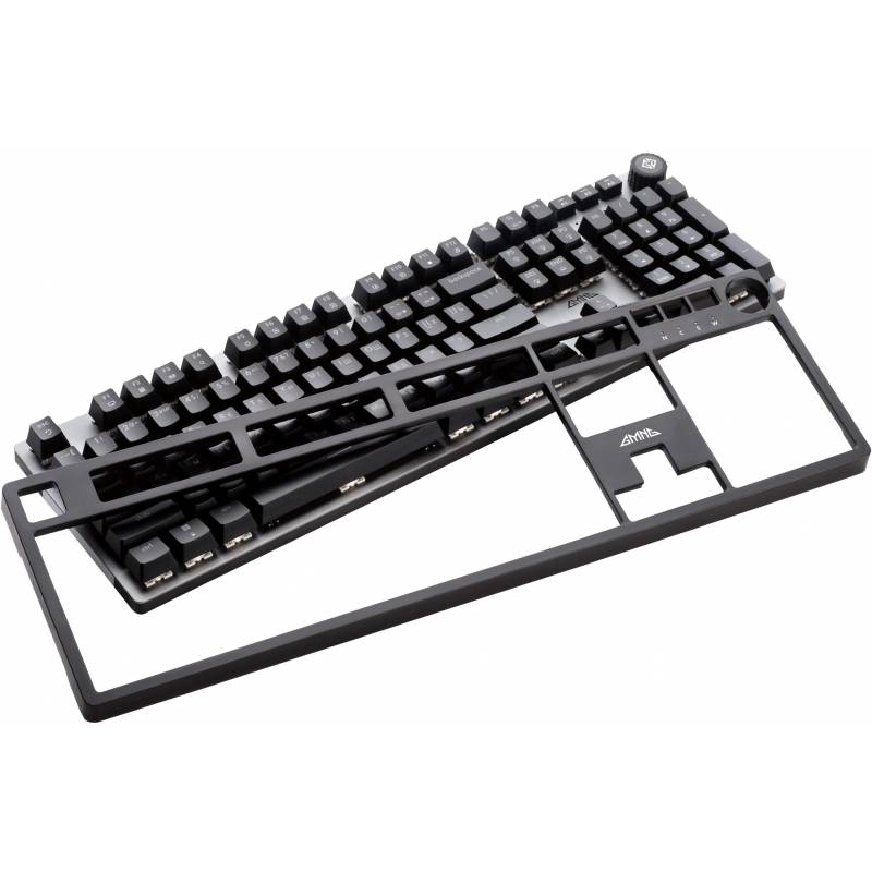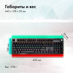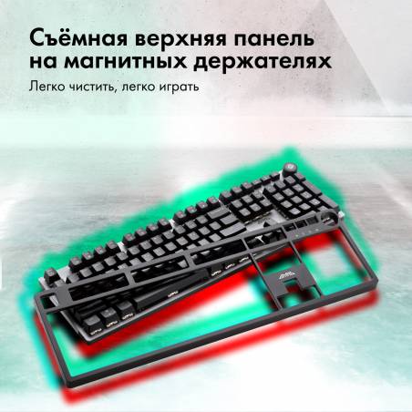 - Игровая механическая клавиатура с красными переключателями, съемным корпусом на магнитных держателях и многоцветной подсветкой