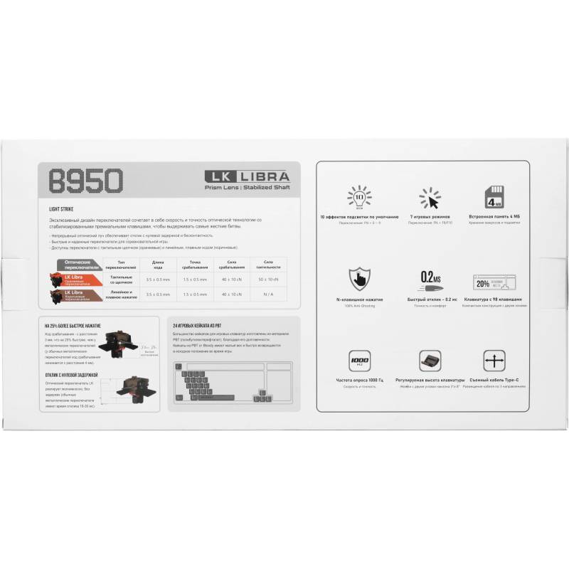 Клавиатура A4Tech Bloody B950 механическая серый USB for gamer LED (B950)