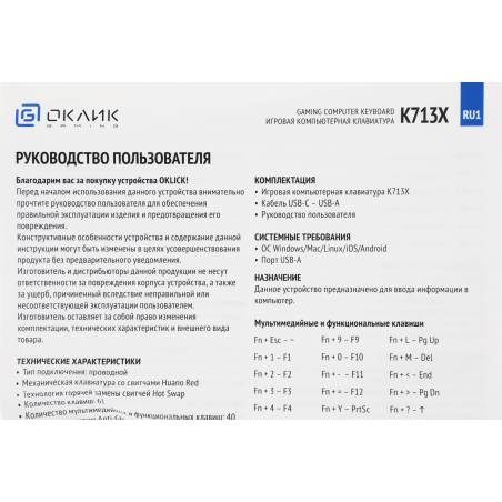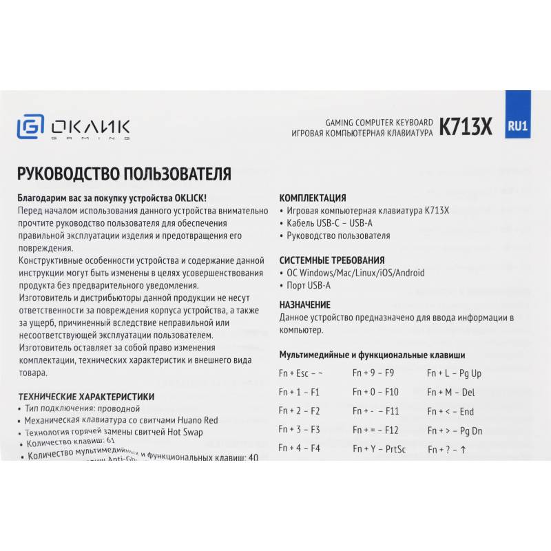 Клавиатура Оклик K713X механическая черный USB Multimedia for gamer LED