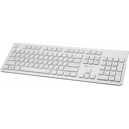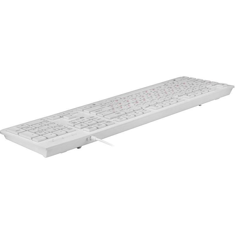 - Тонкая клавиатура белого цвета с клавишами островного типа, с мультимедийный функционалом