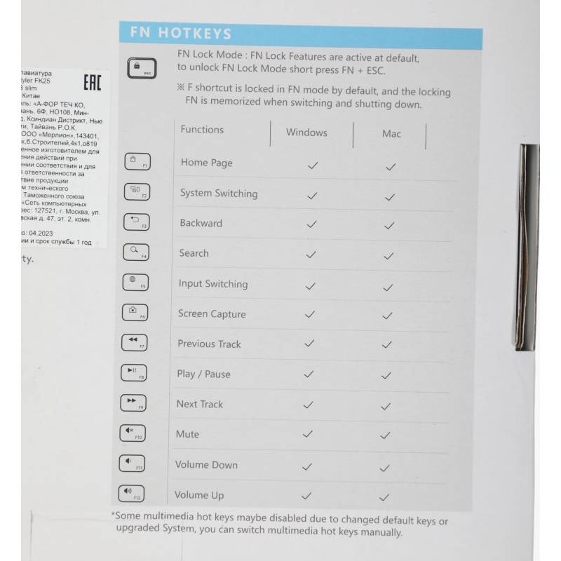 Клавиатура A4Tech Fstyler FK25 белый/серый USB slim
