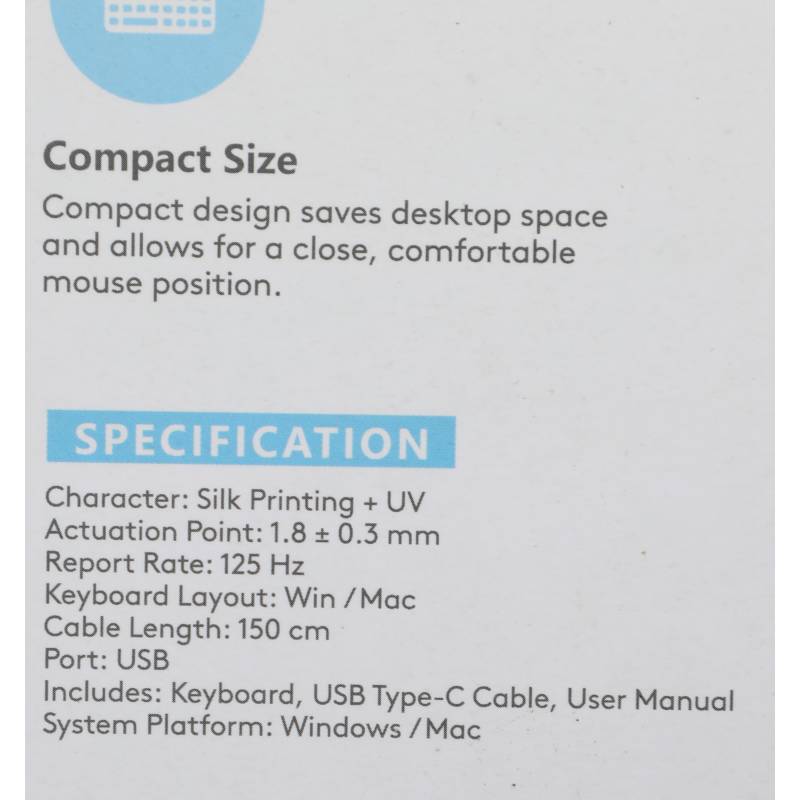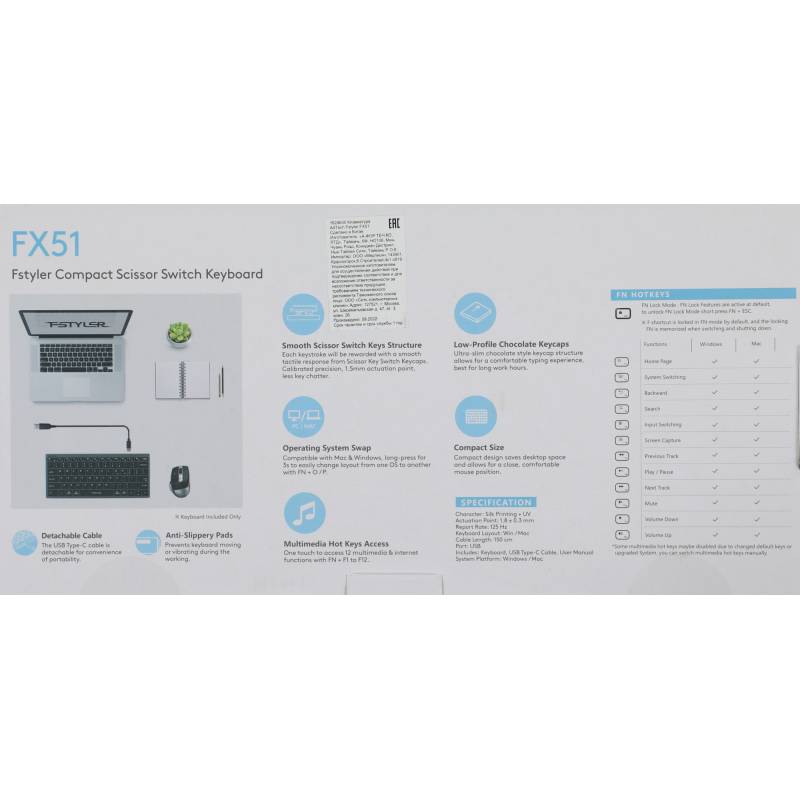 - Компактный размер. Ножничный тип нажатия клавиш. Горячие мультимедийные клавиши: 12 Fn.