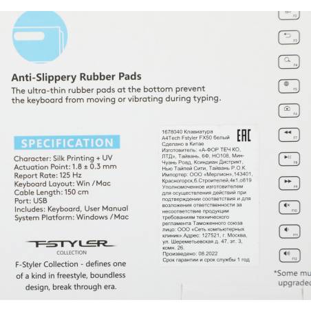 Клавиатура A4Tech Fstyler FX50 белый USB slim Multimedia (FX50 WHITE)