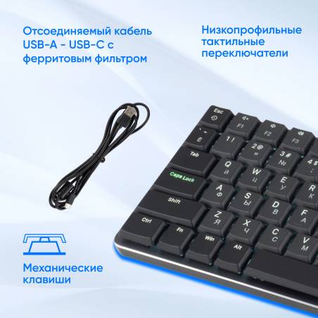 - Низкопрофильная механическая клавиатура на переключателях коричневого цвета. Стильное решение для выполнения офисных задач и надежный девайс для игровых баталий. Тактильные переключатели обеспечивают четкое срабатывание клавиш с приятной обратной связью.