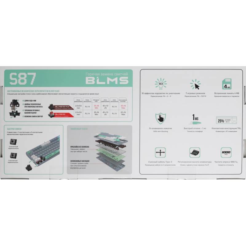 Клавиатура A4Tech Bloody S87 Energy механическая серый USB for gamer LED (S87 USB ENERGY ASH)