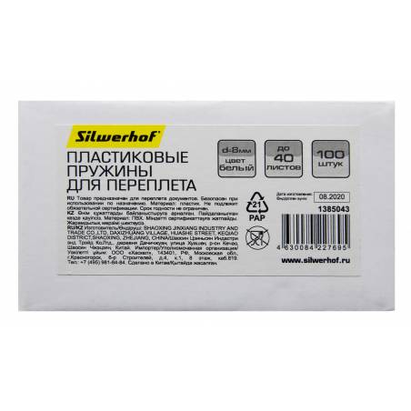 Пружины для переплета пластиковые Silwerhof d8мм 21-40лист A4 белый (100шт) Daily