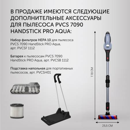 Пылесос Polaris PVCS 7090 HandStick PRO Aqua 450Вт жемчужный/серый