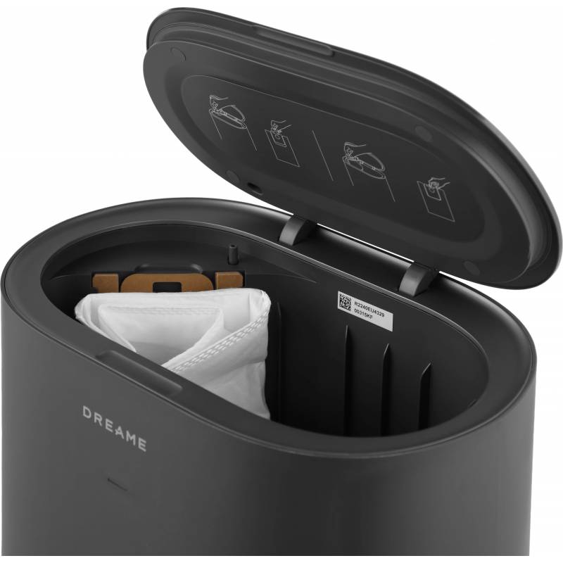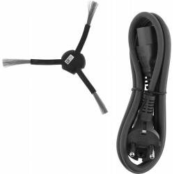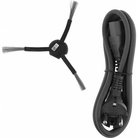 - Док-станция для сбора пыли, губка для влажной уборки, мусоросборник, боковая щетка, основная щетка, мешок для мусора, кабель питания