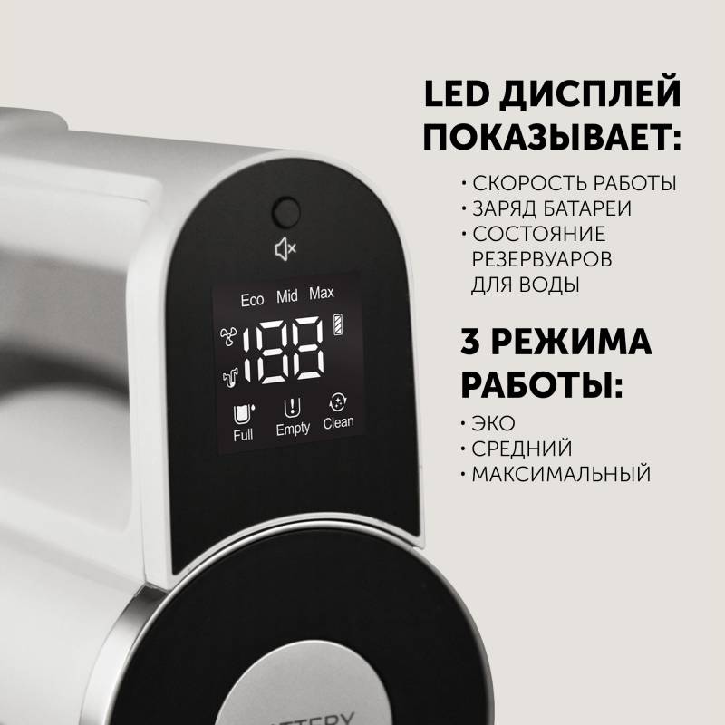 - включения, заполнения пылесборника, режима работы, степени зарядки