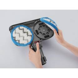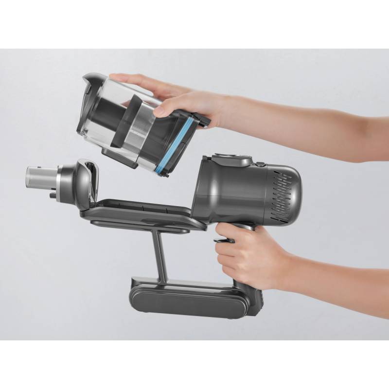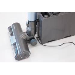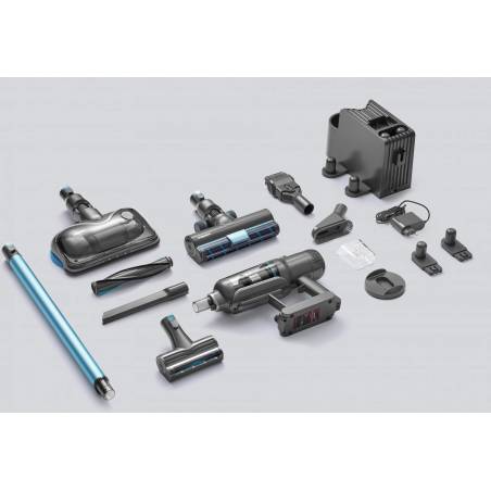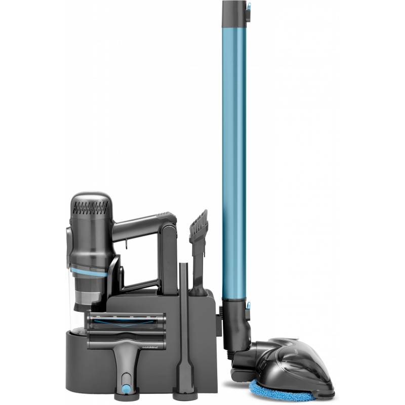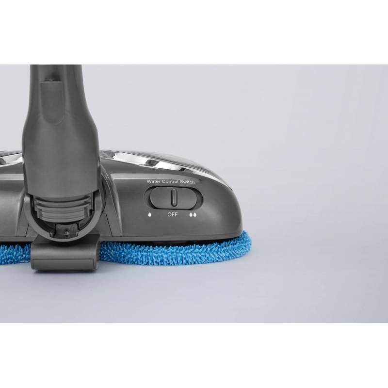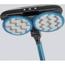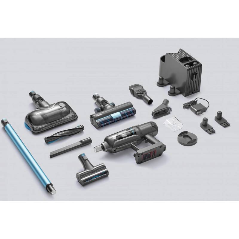 - Стильный дизайн с LED - подсветкой. Время автономной работы аккумулятора 60 минут, а время полного заряда от сети 3,5 часа. Оснащен телескопической ручкой, 6 режимов работы устройства: 3 режима сухой, 2 режима влажной уборки и режим полирования полов.