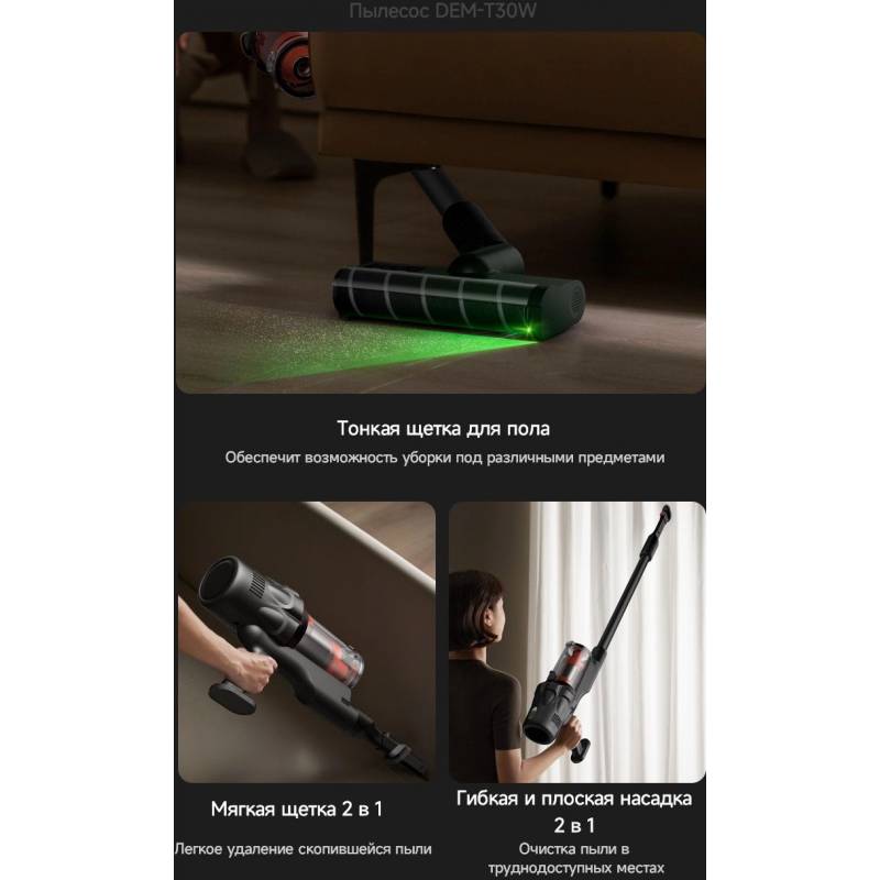 Пылесос ручной Deerma DEM-T30W Station 240Вт серый/черный